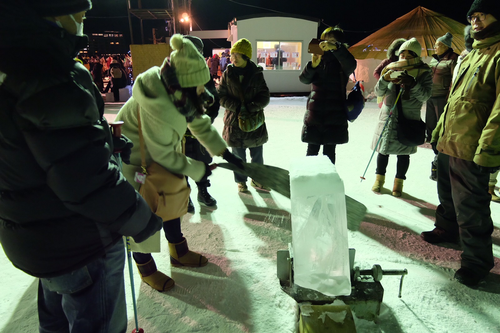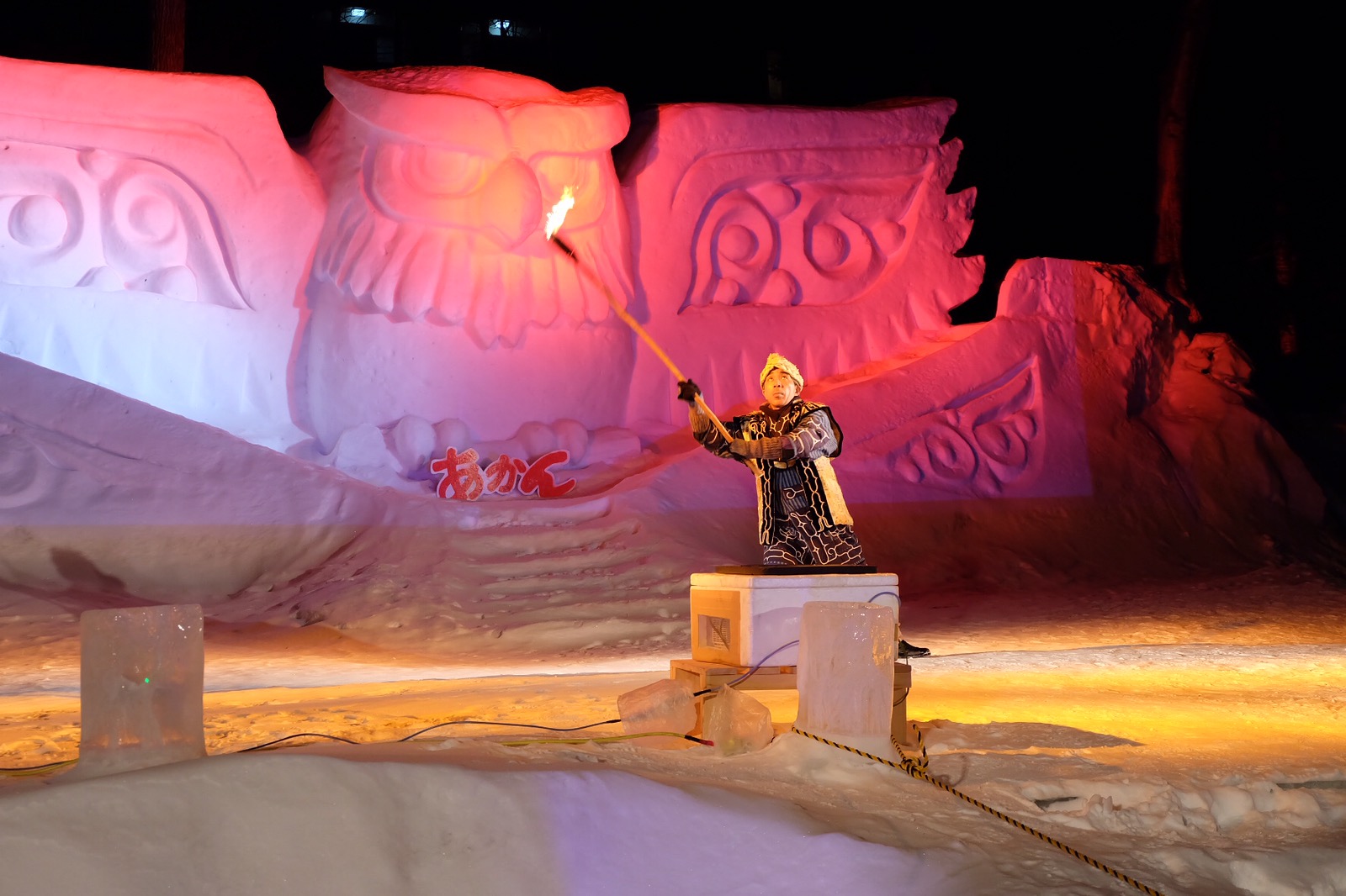 กินอิ่มแล้วก็ได้เวลาออกไปลุยความหนาว ดูอีเว้นต์ในช่วงกลางคืนละ มีทั้งร้านขายเครื่องดื่มอุ่นๆ กิจกรรมลองเลื่อยน้ำแข็ง การแสดงบนเวทีน้ำแข็ง และไฮไลต์คือโชว์ดอกไม้ไฟนั่นเอง งานนี้เข้าชมฟรีด้วยนะ