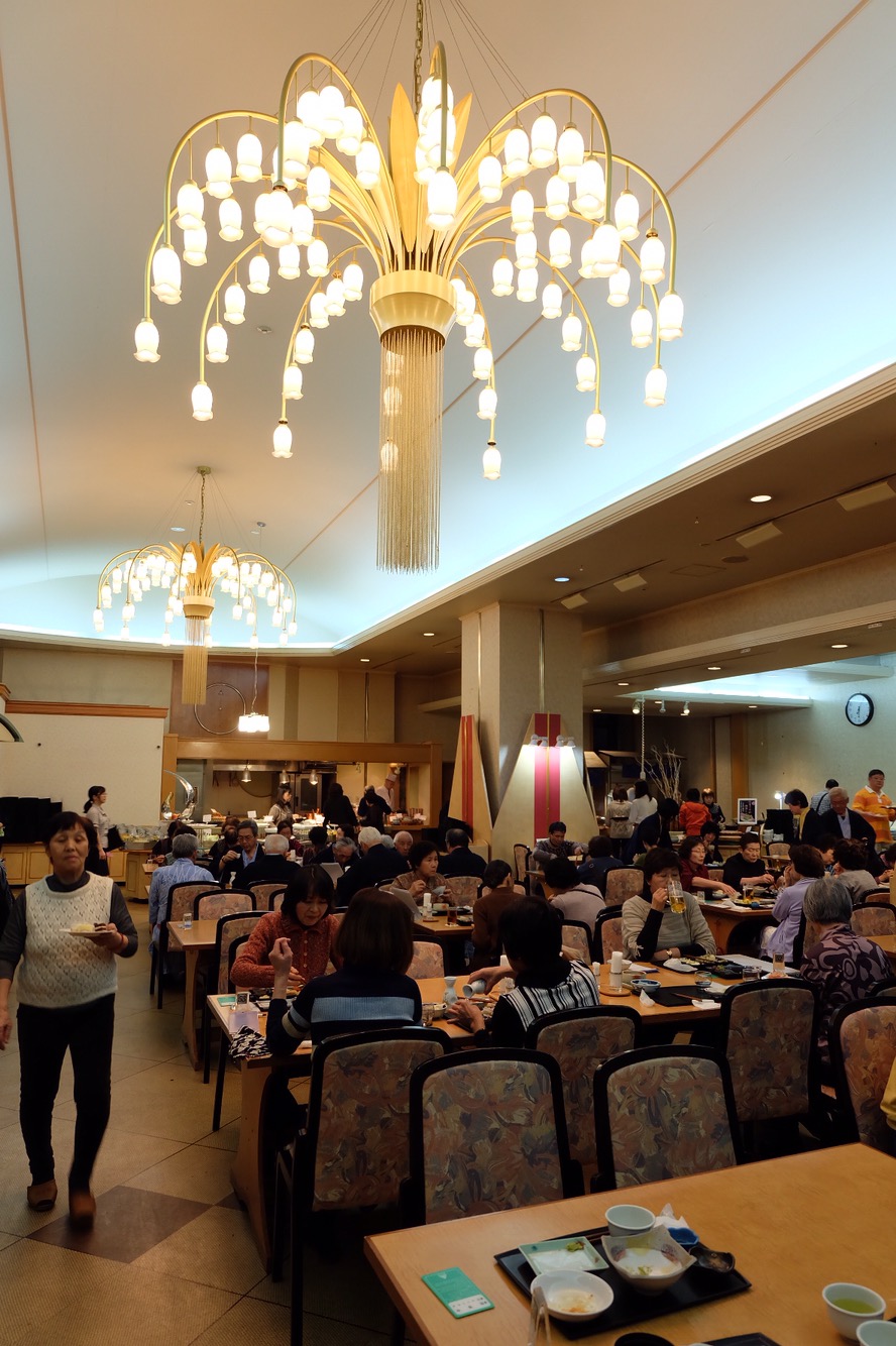 เห็นสวยๆ แบบนี้ไม่ใช่ปราสาทหรือบ้านเศรษฐีที่ไหนนะคะ แต่เป็นจุดพักรถให้พวกเราได้เข้าห้องน้ำและซื้อขนมกิน อลังการเนอะ เรามาถึงโรงแรมที่พักคืนนี้ ตอนประมาณ 6 โมงเย็นกว่าๆ ถือว่าถึงไวกว่ากำหนดการนิดหน่อย เอาของไปเก็บบนห้องก่อนค่อยลงมากินข้าว และนี่คือห้องของเราในคืนนี้ค่ะ เป็นห้องสไตล์ตะวันตกผสมกับแบบญี่ปุ่น กว้างขวาง นอนสบาย แน่นอนว่าที่โรงแรมยังมีออนเซ็นกลางแจ้งให้แช่ด้วยนะ แขกที่มาพักส่วนใหญ่จะมาเป็นหมู่คณะ ที่เราเห็นก็จะมีกลุ่มชาวจีนและทัวร์ไทยด้วย ชาวญี่ปุ่นที่มาเป็นแบบแฟมิลี่, กลุ่มเพื่อนวัยรุ่น รวมถึงแก๊งลุงป้าเหมารถมาเที่ยวกันก็เยอะ แต่ยังไม่ค่อยเห็นฝรั่งซักเท่าไหร่นะ