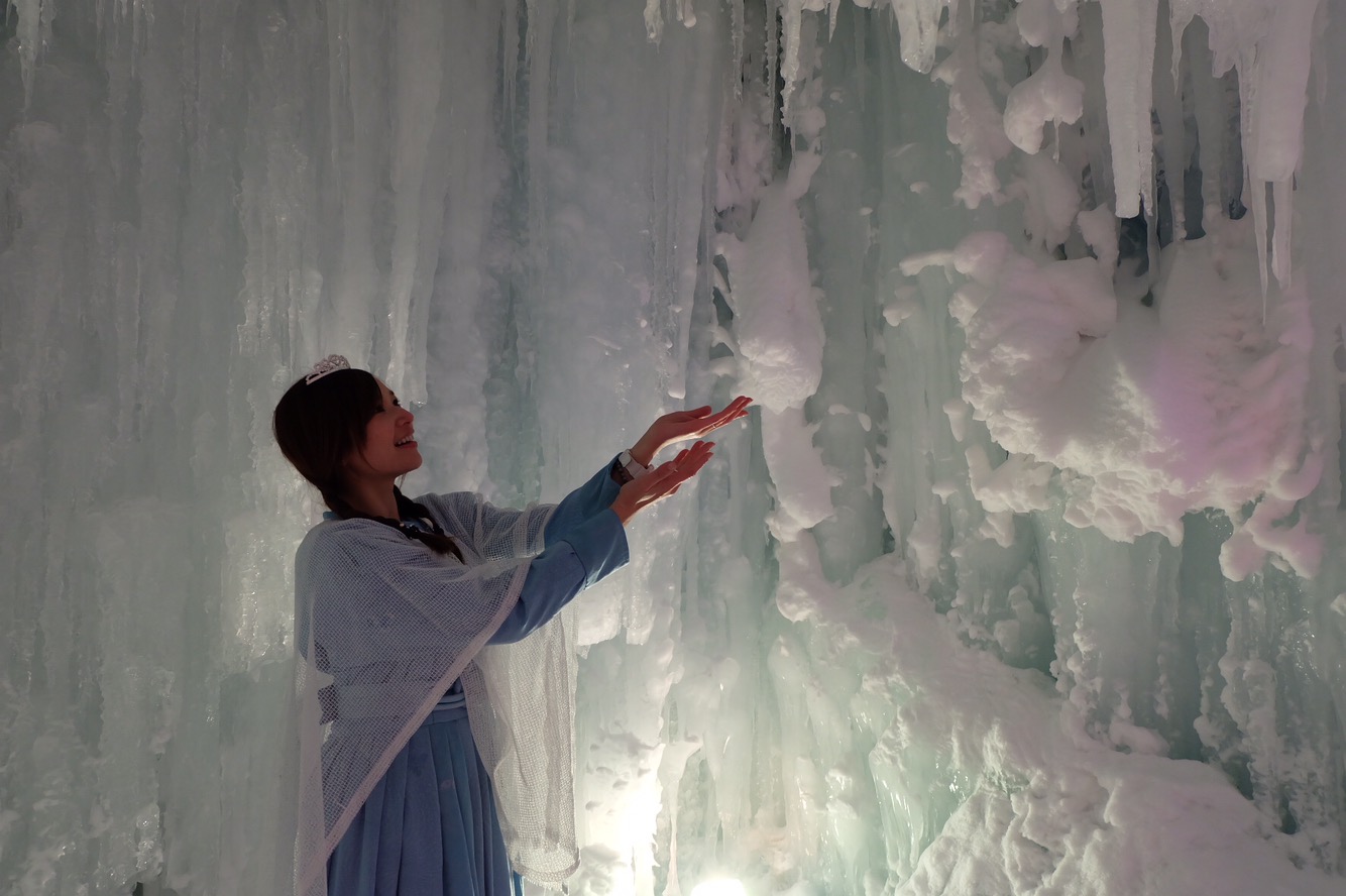 ซึ่งในงานจะมีน้ำแข็งตกแต่งสวยงาม พร้อมไฟประดับให้ถ่ายรูปเล่นมากมาย ลองสังเกตุดีๆจะมีภูเขาน้ำแข็งที่ได้แรงบัลดาลใจมาจากเจดีย์ของเมืองไทยด้วยนะ น่าภูมิใจจริงๆที่ชาวญี่ปุ่นเห็นความงามของวัดบ้านเรา