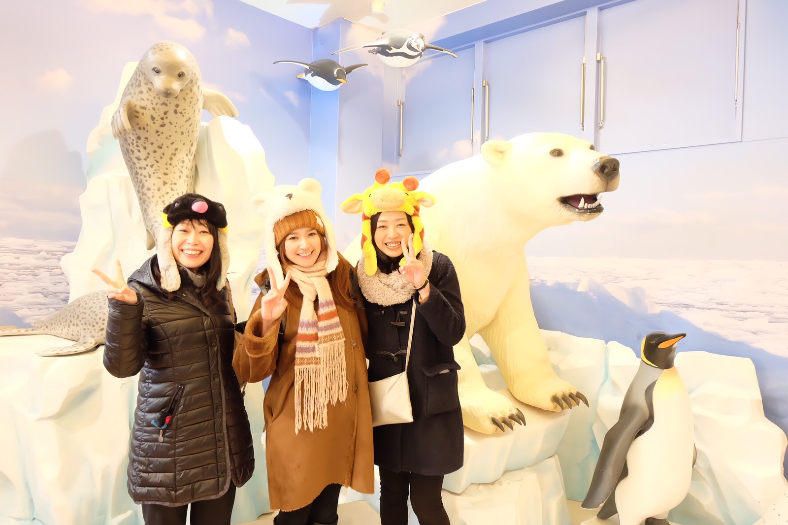 ระหว่างนั่งรถคุณลุงไกด์แกให้ความรู้ว่า ตอนที่ฮอกไกโดเพิ่งก่อตั้งเมืองใหม่ๆในสมัยเมจิ รัฐบาลอยากจะขยายความเจริญ จึงเปิดรับสมัครชาวบ้านจากจังหวัดต่างๆ ไม่ว่าจะเป็นจากฮอนชู, คิวชู, ชิโกคุ เพื่อให้มาตั้งถิ่นฐาน มอบที่ดินให้ทำกินฟรี จึงเป็นที่มาของการที่ชื่อสถานที่ในฮอกไกโด มีชื่อเหมือนกับ ชื่อสถานที่ในเกาะอื่นๆ ของญี่ปุ่นนั่นเอง เช่น คิตะฮิโรชิม่า, คุมาโมโตะ, ยามานาชิ เป็นต้น ส่วนชื่อเมืองอื่นๆ ในฮอกไกโดที่ อ่านยาก และเขียนด้วยคันจิแปลกๆ นั้น มาจากภาษาไอนุดั้งเดิมนั่นเอง ขอบคุณคุณลุงสำหรับความรู้ใหม่นี้นะคะ แล้วเราก็มาถึง”สวนสัตว์อาซาฮียาม่า” 旭山動物園 ในเมืองอาซาฮีคาว่า 旭川市 ที่นี่มีสัตว์เมืองหนาวหลายชนิดให้ได้ยลโฉมอย่างใกล้ชิด ยิ่งถ้ามาในช่วงฤดูหนาว 3 ตัวท็อปของที่นี่อย่าง เพนกวิน, หมีขาว, แมวน้ำ จะลัลล้าร่าเริงเป็นพิเศษ ก็ฤดูของเค้านี่นา ช่วงที่ยังมีหิมะตก (ถึงประมาณเดือนมีนาคม) ทุกวันเวลา 11 โมงเช้าจะมีพาเหรดเพนกวิน ออกมาเดินโชว์ตัวด้วย มันน่ารักตรงที่เพนกวินดูไม่ค่อยเต็มใจเดินนี่แหละ 555 แต่เจ้าหน้าที่ต้องบังคับให้เดินไม่งั้นมันจะเอาแต่นอน อ้วนเผละกันพอดี